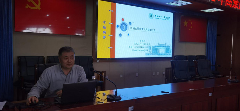 通过收集农场各类病虫草害相关问题,左豫虎教授和陶波教授给出相应解决方案并针对农场情况,对农场约200名基层工作人员及农业种植户进行绿色植保技术培训,提高农场基层工作人员及农业种植户植保专业水平。并与农场生产管理人员、技术员、种植户针对农药减量防控有害生物等问题进行了深入交流,全面、专业地解答了有害生物综合防治、农药减量施用技术等方面存在的疑难问题,提高了管理人员、技术员和种植户对农药减量病虫草害防控技术的认识,为今年农田有害生物的防控提出生产管理建议,为保障农业生产的可持续发展提供技术咨询服务。