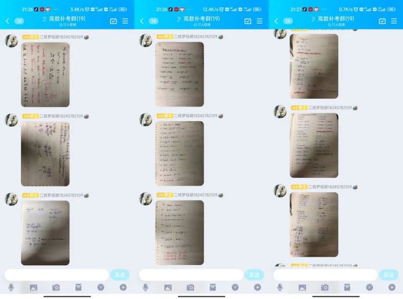 班级针对普化、高数、英语等科目建立补考群,在群中提前发布讲解重点,让同学们清楚的了解到自身学习中的不足,提高学习效率。