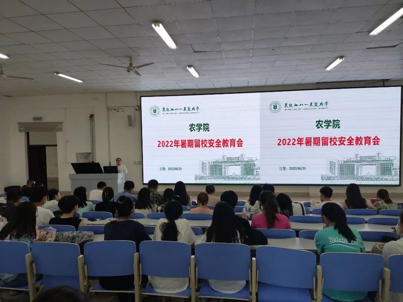 2022年6月25日 上午,农学院2022年暑期留校人员安全教育会在主楼124举办。农学院党委副书记王洋,研究生辅导员白巍及留校的170名学生参加会议。