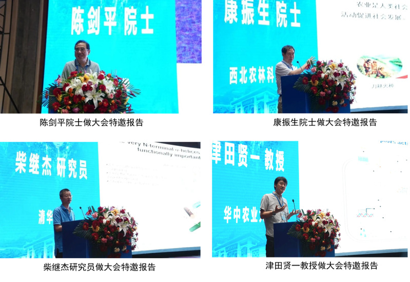 年会共设1个主会场、7个专题分会场,邀请208位专家学者以真菌学、卵菌学、病毒学、细菌及线虫学、植物抗病性与抗病育种、病害诊断为议题进行分论坛研讨,并特邀中国工程院院士陈剑平教授、中国工程院院士康振生教授、中国工程院院士宋宝安教授、清华大学柴继杰研究员、华中农业大学津田贤一教授、中国农业大学杨丽教授、中国农业科学院周雪平教授、南京农业大学王源超教授、山东农业大学丁新华教授等25名专家学者,围绕作物抗病性与病害绿色防控、新型抗植物病毒剂的创新与应用、植物NLR的信号传导机制、植物RNA病毒的m6A修饰、大豆根腐病发生规律与绿色防控等方面的研究内容做大会特邀报告,交流了各科研团队在植物病理学理论基础研究和应用技术相关研究领域的重大进展。