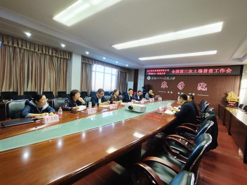 为全面推进北大荒集团第三次全国土壤普查工作,摸清全垦区各类土壤情况,10月26日下午,北大荒集团农业发展部来买球赛的app官网开展土壤普查工作会,推进三普工作。会议由院长郭永霞主持,北大荒集团北大荒集团农业发展部高级经理、绿办主任、三普办公室主任高世杰、校新农村发展研究院院长宫占元、农学院副院长杜吉到、北大荒集团三普办工作人员及学院农业资源与环境系三普工作团队部分教师参加了会议。
