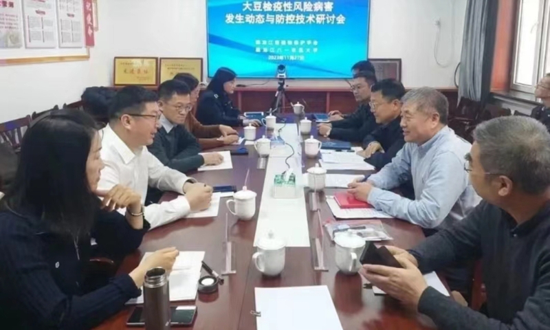 全国农技推广服务中心首席专家刘万才、植物检疫处冯晓东处长和陈志群研究员,以及其它与会专家,围绕我省大豆检疫性风险病害的发生发展趋势、侵入和扩散风险、危害特点、病害诊断技术、绿色防控技术和下步措施,进行了深入研讨。各位与会专家对我省大豆上发生的检疫性风险病害发生动态调查、监测和防治等方面采取的措施和取得的成效,给予了充分肯定,并从国家战略角度出发,以大豆疫霉根腐病为切入口,在加强资金保障、政策引导、基础研究、检验检疫、抗病品种储备、加深国内外交流等方面提出了建议。本次会议在黑龙江省科协学术学会部指导下,在黑龙江八一农垦大学和黑龙江省植检植保站的支持下成功召开,取得了预期成效。
