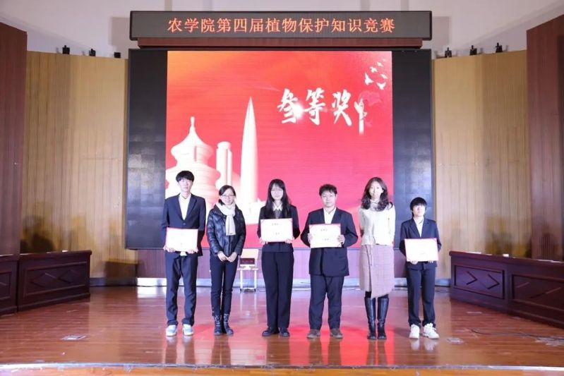 在三个环节中间穿插了合唱和器乐演奏的节目,为竞赛锦上添花,更添热闹。经过激动人心的角逐,植物保护三班脱颖而出,荣获本次竞赛一等奖;植物保护一班获得二等奖;植物保护二班和农学创新班获得三等奖。