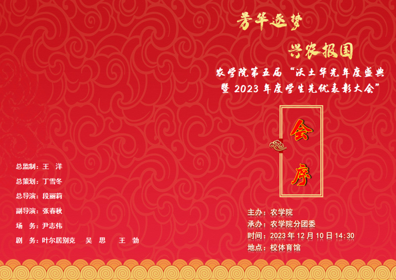 为进一步提升学生工作质量,落实立德树人根本任务,表彰先进,树立典型,传递榜样力量,营造积极健康向上的学院风气和学习氛围,2023年12月10日,农学院在学校体育馆隆重举办第五届沃土华光年度盛典暨2023年度学生先优表彰大会。学校党委副书记高宏,学生工作部、学生处处长金耀武,校团委书记李颖,招生就业处处长杨艳秋,宣传部、统战部副部长刘佳丽,教务处副处长王宪青莅临,买球赛的app官网院长郭永霞,党委副书记王洋,副院长郑雯及系主任、辅导员、班主任代表出席,农学院全体在校生参加。活动由辅导员叶尔居别克、吴思、研究生刘傲男、李怿聪主持。