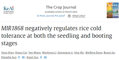 近日,买球赛的app官网孙晓丽/孙明哲教授团队在中科院一区TOP期刊The Crop Journal在线发表了题为“MIR1868 negatively regulates rice cold tolerance at both the seedling and booting stages”的研究论文,该研究鉴定到一个水稻物种特异的MIR1868负调控水稻苗期和孕穗期耐冷性,为耐冷水稻新品种培育提供参考。