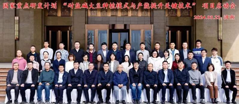 3月22日-24日,山东省农业科学院作物研究所牵头的国家重点研发计划“主要作物丰产增效科技创新工程”专项“耐盐碱大豆种植模式与产能提升关键技术”项目启动会在山东济南召开。会议邀请南京农业大学盖钧镒院士,国家大豆产业体系首席科学家吴存祥研究员,国家食用豆产业体系首席科学家、江苏省农业科学院副院长陈新研究员,中国农业科学院油料作物研究所周新安研究员,山东省盐碱地农业产业体系首席科学家、山东农业大学资环学院院长诸葛玉平教授组成评议专家组进行点评,相关部、处领导参加会议。