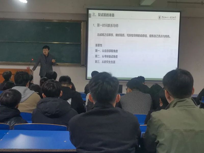 张明聪副院长让同学们认真对待并重视复试,从注意着装、日常礼貌用语、注意事项、复试的形式、常问问题及回答问题的技巧和方法等方面为大家进行了详细的讲解,还用具体实例讲解复试的方法,希望大家有针对性的准备,提高自身心理素质,都能自信的通过复试,最终成功上岸,同时还回答了同学们提出的问题。