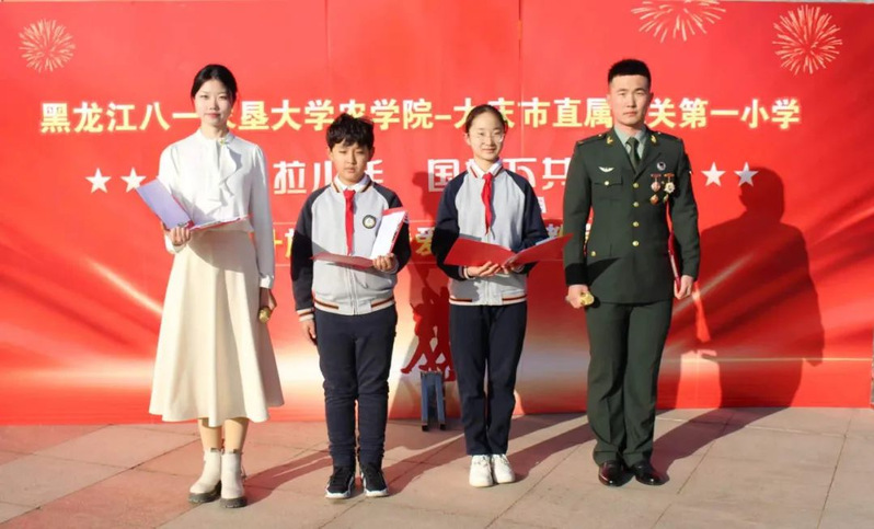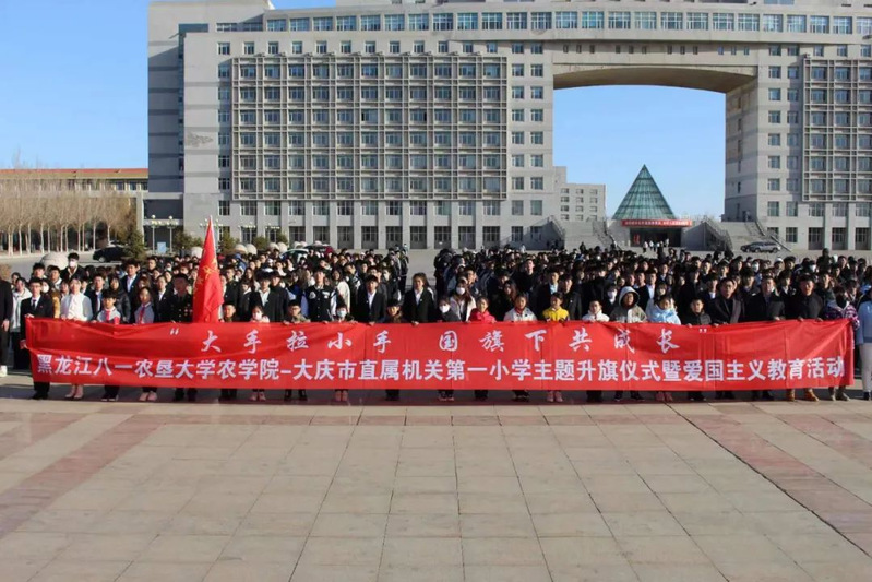 为进一步加强爱国主义教育,引导学生厚植家国情怀,按照校团委《关于组织开展爱国主义教育-“国旗下共成长”主题升旗仪式的通知》要求,结合学院特色育人系列活动,4月1日,在学校八一广场,农学院邀请大庆市直属机关第一小学校20余名师生代表来校,共同开展“大手拉小手 国旗下共成长”主题升旗仪式暨爱国主义教育活动。机关一小书记宋德印、政教处主任孙文超、党办主任马力波,农学院党委副书记王洋、分团委书记丁雪冬、全体辅导员、学生骨干及本科学生近1200人参加了活动,仪式由学院兼职团委副书记李怿聪主持。