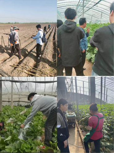 离开学校来到公司,我们的工作并不是一帆风顺的,在调研和产品推广过程中也遇到了很多问题,在不断的反思和改进中我们认识到了“礼仪”“赞美”“共情”“感恩”这四个方面的重要性。保持良好的礼仪,不仅能够树立一个好的形象,更能拉近我们与农户之间的距离,让我们的推广工作完成的更加顺利。同时发自内心的赞美也能对我们的工作提供很大的帮助。不过令我们感触最深的是共情和感恩。我们从学校来到公司,从只面对书本上的理论知识到真正参与到农业生产的过程中,我们感受到了农业生产的复杂性和艰巨性。面对各种作物在生长中遇到的困难,我们不仅需要有丰富的理论知识,更需要丰富的实践技能,比如我们在课本中学习到黄瓜生长的最适温度为26-28度,但在实际的生产过程中却往往高于最适温度。向农民朋友请教和学习的过程也是我们将理论和实践相结合的过程。同时我们也感受到了农业生产的艰辛和不易,当我们真正的走入高温大棚去帮助农民铺地膜、铺滴灌带、蘸花时我们更加感受到了农民的辛苦,但即使在艰苦的条件下,农民朋友也始终保持乐观向上的心态,给予我们很多善意和鼓励,这也让我们发自内心的共情和感恩,更让我们坚定了为祖国农业做出自己的贡献的决心。