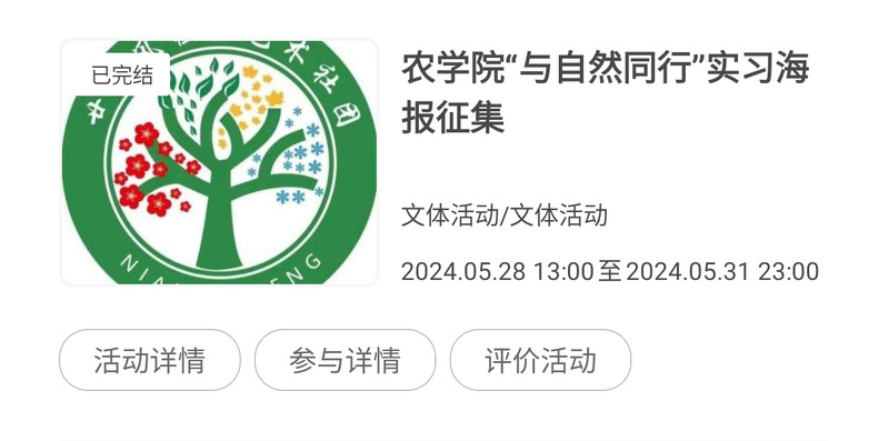 此前廿四风植物艺术社团已在到梦空间为该次实习发布了“与自然同行”海报征集活动进行预热,而大部分同学通过参与活动都对本次实习有了一定的了解和期待。