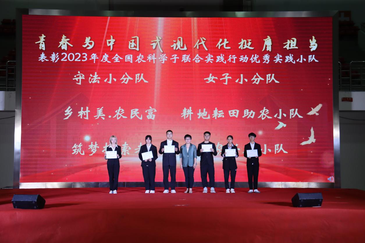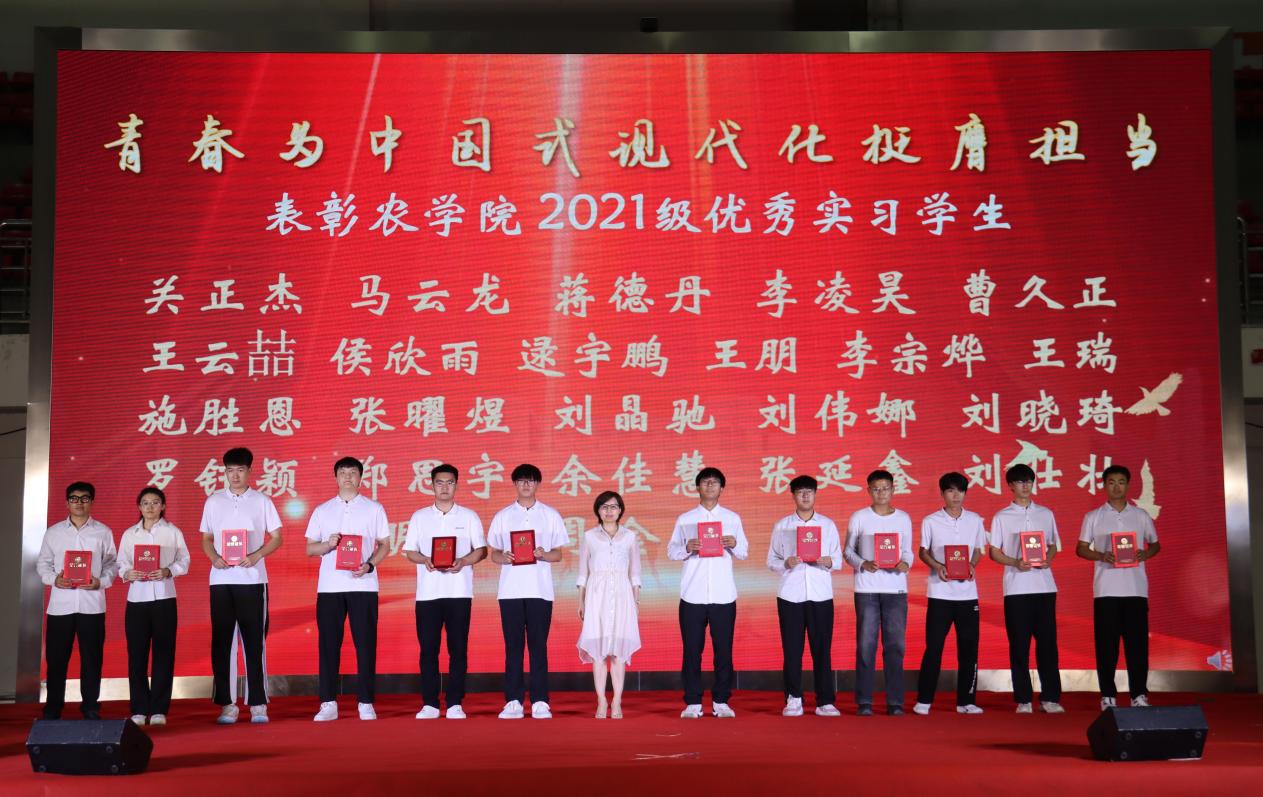 会上,各单位的实习生代表回顾了自己的实习经历,分享了实习经验,交流了实习收获。教学副院长孙丽芳宣读了《关于表彰农学院2021级优秀实习学生的决定》,科研副院长张明聪宣读了《关于表彰2023年度社会实践优秀实践小队和优秀个人的决定》,院党委副书记王洋宣读了《关于表彰2023年度全国农科学子联合实践优秀指导教师和优秀实践小队的决定》,校团委书记赵玥、教务处副处长杨树果、招生就业处副处长齐星炜分别为获奖学生和团队颁发了荣誉证书。