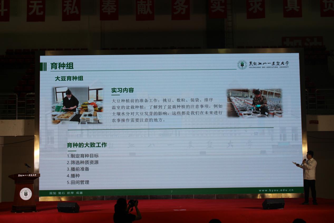 会上,郭永霞院长致辞,她表示,学院一直高度重视实践育人工作,学院每年都会精心安排生产实习、社会实践,及时总结分享经验。本年度的生产实习得到了各实习单位的高度认可和赞誉,涌现出一批优秀实习生,达到了生产实习预期的成效;社会实践工作开展顺利、成果丰硕,受到各实践地区的好评,充分展示“北大荒精神”育人塑魂成效喜人。同时,她希望同学们在今后的实践中,能以习近平新时代中国特色社会主义思想为指导,主动适应新农科发展和应用示范校建设的需要,不断丰富内容内涵、创新方式方法,充分展示八一农大学子的优良风貌,并取得新的、更大的成绩。