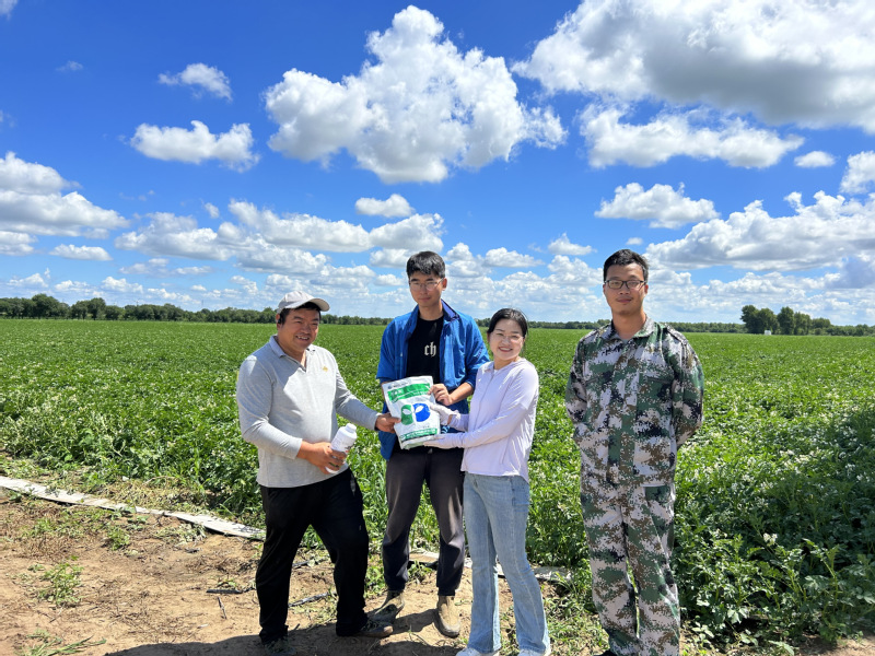 在玉米和大豆单产提升技术示范田,科技特派团详细观测了田间植株的长势情况,帮助种植户分析了今年密植化控技术的实施效果和存在的不足,并提供了生育后期促进玉米和大豆丰产的调控技术方案,发放了配套农资产品。在马铃薯和杂粮生产田,科技特派团利用无人机精准辅助管理技术手段,初步评估了作物的生长状态,提出了后续的田间管理建议,针对存在养分亏缺和病害发生风险的田块,相关教师为种植户制定了病虫草害绿色综合防控方案,分发了自主研发的叶面肥和药剂,为当地农作物产品优质高效生产提供了科技保障。