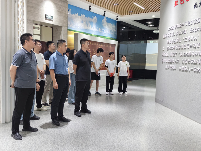 随后,一行人移步至校史馆。黑龙江八一农垦大学于1958年由时任农垦部部长王震将军创立,诞生在十万复转官兵开发建设北大荒的历史大潮中,旨在为北大荒建设提供人才和科技支撑。如今,已经走过六十六载的黑龙江八一农垦大学,始终与北大荒这片热土紧密联系在一起,传承北大荒精神,培养了一批又一批知农爱农的新型人才。馆内,主要以图片和实物的形式展示了学校从建立到迁址再到现在发展的历史,集中表达了艰苦奋斗、无私奉献、务实求真、负重致远为主要内涵的八一农大精神。