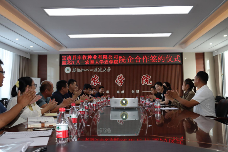 为提升科技创新能力,加强人才培养,充分发挥高校专业优势和企业生产优势,促进科技成果转化。8月27日下午,农学院召开与宝清县丰收种业有限公司合作洽谈会。会议由科研副院长张明聪主持,农学院党委书记姜楠、院长郭永霞、党委副书记王洋、宝清县丰收有限公司总经理任艳萍、宝清县国家现代农业产业园服务中心副主任赫荣来等人参加会议。
