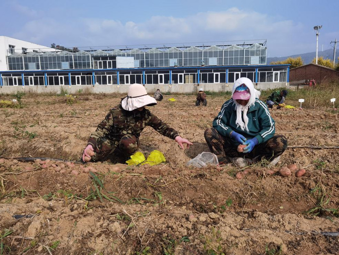 9月25日-29日,张桂芝老师带领团队成员到校企合作单位内蒙古蒙森农业科技有限公司开展合作育种基地的新品系、新品种的种薯收获和贮藏工作,并进行现场指导,双方按期完成了合作项目阶段任务。
