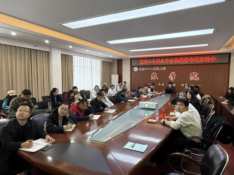 10月16日下午,农学院党委开展党的二十届三中全会精神专题宣讲,学院党委书记姜楠主讲,学院领导班子、各基层党支部书记和委员参会、农学基础系全体党员。