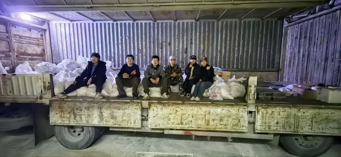 在完成了艰巨的装车工作之后,众人纷纷登上那辆九米长的货车,欢声笑语中,共同留下了难忘的合影瞬间。