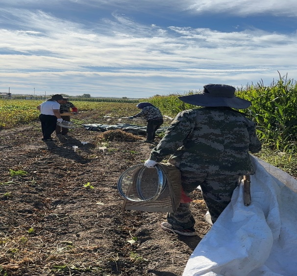 九月赴和平牧场、安达农业科技园区、855农场、大庆启隆盐碱地等多地开展秋收工作。