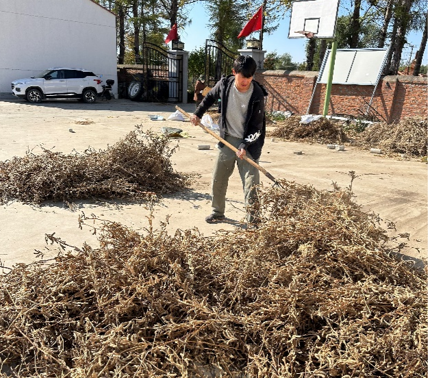 秋风起,大豆黄,金黄的大豆荚在阳光下闪耀,科技小院的年轻人们,带着满心的喜悦和期待,手握镰刀,穿梭在田间,收割着沉甸甸的大豆。
