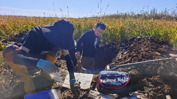 农历八月二十:推进土壤普查 赓续北大荒精神——兴凯湖畔。我们来到了一个具有特殊意义的点位——距离国境线最近的采样地点。经过三个小时的努力,我们成功采集1.2米深的白浆土整段标本。经过我们的细致修整,样本现已达到了高标准的规范要求,展现出良好的完整性和准确性。