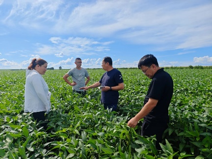 8月深入克山农场、长水河农场、大西江农场、857农场及大河湾农场等地,开展的“一喷多促”,以“防病虫、促早熟、增粒重”为核心的政策措施,结合大豆抗旱保墒、病虫害防治等具体问题“把脉问诊”、答疑解惑,为农户提供了专业的指导和建议,为大豆丰产保驾护航。