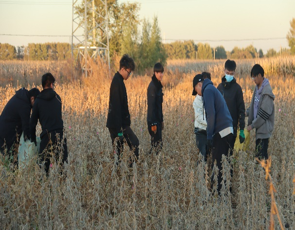 一年来,团队10月到安达试验基地对化控处理的大豆田、玉米田进行田间取样并进行考种工作。