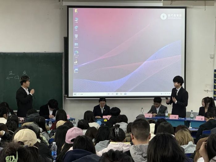 在首局比赛中,双方就“梗文化让年轻人的精神世界更丰富还是匮乏”展开辩论。正方农学院代表队从梗文化的娱乐性、社交性出发,指出梗文化以轻松诙谐的方式打破沟通壁垒,能快速拉近人与人之间的距离,同时丰富年轻人的语言表达形式,成为年轻人表达情感与态度的独特符号,让精神世界更加多元。反方人文社会科学学院代表队则强调,部分低俗、同质化的梗文化缺乏深度内涵,容易导致年轻人思维碎片化,过度沉溺其中会使人丧失独立思考能力,阻碍深度阅读与学习,从而让精神世界变得匮乏。双方辩手旁征博引,结合当下网络热点与生活实例,在攻辩与自由辩论环节中你来我往,展现出极强的逻辑思维与应变能力。