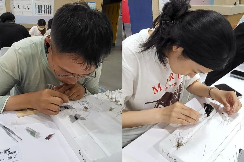 那么经历了两天的学习和锻炼,学生们在昆虫学老师的指导下,不仅深入自然,捕捉并观察了各式各样的昆虫,还亲手制作昆虫标本,将这份来自大自然的馈赠永久保存。而此次制作标本比赛,则是对学生们学习成果的一次集中展示和检验。比赛现场,学生们纷纷拿出自己的“看家本领”,利用细针、展翅板、标签纸等工具,小心翼翼地将一只只昆虫固定在标本盒中。这场制作标本比赛不仅考验了学生们的动手能力和审美水平,更激发了他们对昆虫学的浓厚兴趣。