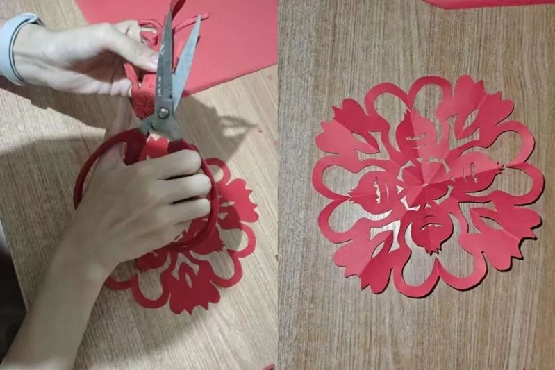 剪纸体验现场,红色的纸张在队员们手中翻转,剪刀与纸张碰撞出清脆的声响。在非遗传承人的指导下,队员们从简单的“福”字窗花入手,逐步尝试复杂的“喜鹊登梅”“连年有余”等吉祥图案。当一幅幅栩栩如生的剪纸作品完成时,队员们不仅掌握了“折、剪、刻”的基本技巧,更读懂了剪纸纹样中“趋吉避凶、祈福纳祥”的民俗文化,感受到“指尖上的传承”背后的生活智慧。
