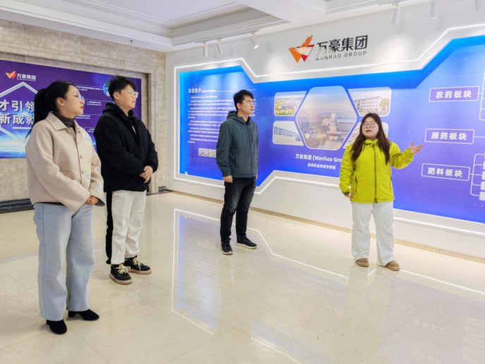随后,团队赴山东万豪集团座谈交流。集团人力资源总监马玉山热烈欢迎团队,通过宣传片与专题汇报,全面介绍了集团在原药合成、环保制剂、功能肥料等领域的产业布局与发展规划,“南北呼应、两翼齐发”的产能格局及“成为全球卓越的高性价比植保产品及作物解决方案提供商”的愿景,重点分享了近年在智慧农业研发、绿色农产品供应链建设上的投入与成果,并结合岗位需求明确了对农学、植保等相关专业人才的招聘标准,尤其强调对兼具专业技能与创新思维的复合型人才的迫切需求。白巍副书记结合学院专业优势与集团业务板块,介绍了学院在寒地农业、盐碱地改良等领域的教学科研成果及人才培养特色,提出“校企共建实习基地、联合开发职规课程”的合作构想,力求实现人才培养与企业需求精准匹配。就业辅导员王勃与集团就实习岗位设置、毕业生招聘等深入沟通,达成举办专场招聘会、探索“实习-就业”一体化输送机制的共识。座谈期间,团队还就学生职业发展规划、企业薪酬福利体系、行业发展前景等学生关心的问题与企业方进行了详细交流,为后续就业指导工作积累了一手资料。