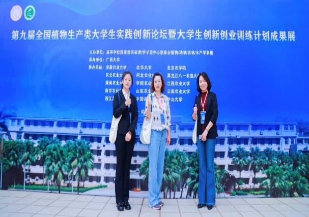 2023年10月12-15日,由高等学校国家级实验教学示范中心联席会植物/动物/农林/水产学科组主办,由广西大学承办的第九届全国植物生产类大学生实践创新论坛暨大学生创新创业训练计划成果展在广西大学成功召开。买球赛的app官网农学院郑雯副院长带队,与邓杰老师、本科生李宇欣参加了本次大会。据统计,此次大会共有全国16所涉农高校的200余人参加,郑雯院长担任本次论坛答辩组评委。